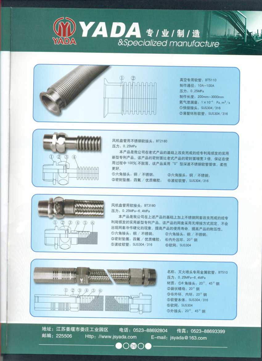 秉天時 籍地利 仰人和 虔誠一個永恒的理念,創(chuàng)新永續(xù).百諾不如一信,亞達人堅持以信為本,視客戶如同上帝,把對信譽的追求,體現(xiàn)在嚴(yán)格的質(zhì)量控制和完善的客戶服務(wù)上,讓客戶百分之百滿意是亞達人不變的信念。 本廠系ISO9001質(zhì)量認(rèn)證企業(yè)、計量合格企業(yè)。本廠專業(yè)致力于生產(chǎn)不銹鋼金屬波紋軟管、超高壓、高壓膠管、波紋管補償器(膨脹節(jié))、立式、臥式、冷卻器。本廠產(chǎn)品具有承受壓力高、彎曲半徑小、抗疲勞性能強、使用壽命長等特點。廣泛應(yīng)用于電力、石化、冶金、水泥建材、工程機械、礦山及液壓系統(tǒng)。產(chǎn)品暢銷全國各地。 今日亞達之成功源自諸多客戶的厚愛,明天的輝煌更離不開您對我的支持與信賴。查看更多>>